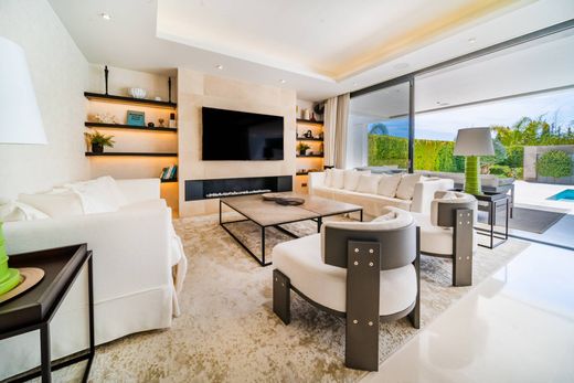 فيلا حديثة للبيع في ألتوس دي بوينتي رومانو، جولدن مايل، ماربيا نقدم فيلا مصممة جديدة للبيع في واحدة من أفضل الأماكن للعيش في ماربيا. يقع فوق واحدة من أكثر المناطق المرغوبة في Golden Mile، Altos de Puente Romano، وسوف تستمتع بأسلوب حياة لا مثيل له. يوفر Altos de Puente Romano الأمن على أعلى مستوى، مع خدمة الأمن على مدار 24 ساعة وبيئة جميلة. تقع الفيلا المذهلة في قلب هذه المنطقة المرموقة وبجوار العديد من المتاجر والمطاعم الفاخرة، بالإضافة إلى فندق Puente Romano الشهير، وكلها على بعد 15 دقيقة فقط سيرًا على الأقدام من الشاطئ. تتميز الفيلا بتصميم عصري جميل يضم بعض التفاصيل الاسكندنافية. موزعة على طابقين بالإضافة إلى مقصورة تشمس اصطناعي جميلة وطابق سفلي. الطابق الأرضي من هذا المنزل محاط بتراسات رائعة مع إمكانية الوصول إلى الحديقة والمسبح. ستجد في هذا الطابق أيضًا غرفة معيشة ذات مخطط مفتوح ومطبخ مجهز بالكامل. ستصل من خلال الردهة إلى جناح غرفة نوم الضيوف الساحر. الميزة الرئيسية للطابق الأول هي الجناح الرئيسي المذهل، والتصميم الجميل للمساحة، بالإضافة إلى الحمام الراقي والشرفة الخاصة، مما يجعله استثنائيًا. يكتمل هذا الطابق بغرفتي نوم للضيوف بحمام داخلي وشرفة ثانية. ستجد في مقصورة التشمس الاصطناعي مسبحًا ثانيًا مع غرفة طعام ومقصورة تشمس اصطناعي، وهي مثالية للاستمتاع بمناخ ماربيا المثالي. يحتوي الطابق السفلي على سينما فاخرة كبيرة وصالة ألعاب رياضية وغرفة تخزين/غسيل وجناح غرفة نوم الضيوف الأخير. على وجه الخصوص، تستخدم هذه الفيلا أحدث التقنيات، مما يوفر تحكمًا كاملاً في الإضاءة والموسيقى وتكييف الهواء والأمن، مما يضمن تجربة معيشية سلسة ومتطورة.