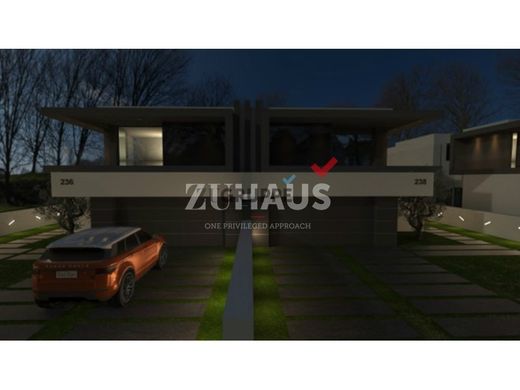 Doppelhaushalfte im Bau mit moderner Architektur und Moglichkeiten der Wahl einiger Oberflachen, die Villa ist auf dem Boden von: Eingangshalle, komplettes Bad, Buro oder Schlafzimmer, Garage fur 2 Autos, Innengarten, Voll ausgestattete Kuche, Waschkuche und ein großer Aufenthaltsraum mit Warmeherd. Im ersten Stock haben wir eine Master-Suite (mit Zugang zu einem privaten Balkon, einem großen begehbaren Kleiderschrank und einem Badezimmer mit zwei Waschbecken), zwei Schlafzimmer mit Zugang zu einem Balkon und ein Badezimmer. Im Garten, wo es moglich ist, ein Schwimmbad zu machen, haben wir auch einen Grill mit einem Waschbecken.