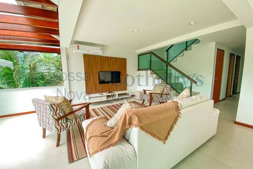 Völlig unabhängiges Haus, 400 Meter von Praia Brava entfernt. Neues und sauberes Haus, hat ein großes Wohnzimmer, ein Fernsehzimmer und ein Esszimmer, mit Klimaanlage und einer Küche mit maßgefertigten Schränken. Der intime Bereich besteht aus fünf Schlafzimmern, von denen vier Suiten sind (eines davon auf der Außenseite). Darüber hinaus verfügt es über einen Gourmetbereich mit Grill, Holzofen, Schwimmbad, Sauna und Garten. Garage für zwei Autos, Stellplätze auf der Straße, also sehr ruhig. Das Haus befindet sich auf einem ansteigenden Gelände, das Treppen steigen muss, aber der Bereich oben ist flach, mitten in der Natur und mit viel Privatsphäre.
