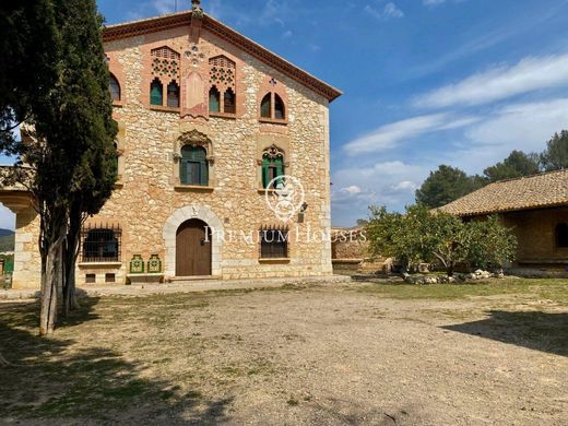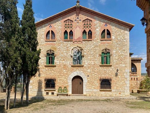 Can Miret de las Torres, ein modernistisches Bauernhaus aus dem Jahr 1898 zum Verkauf mit 16 Hektar Land und 1.500 m2 Wohnfläche, in Sant Pere de Ribes, 1 km von Sitges und 20 Minuten vom Flughafen Barcelona entfernt. ~ ~ Can Miret de las Torres liegt neben dem Zentrum von Las Torres und grenzt an Vallpineda. Es handelt sich um ein isoliertes Gebäude im modernistischen Stil, das aus einem Erdgeschoss und zwei Etagen mit Satteldach besteht. Die symmetrisch aufgebaute Fassade ermöglicht den Zugang zum Hauptgeschoss durch eine halbkreisförmige Bogentür und zwei mit Ziegeln eingerahmte Fenster. Die gesamte Verzierung der Fassade ist Teil des gotischen Aspekts der Moderne, deutlich sichtbar in den Fenstern des ersten Stocks. Die Form der Fenster im zweiten Stock wurde durch die dekorative Verwendung von Ziegeln bestimmt. An der Hauptfassade befindet sich eine Sonnenuhr, die mit Deklinationskurven der Sonne und den Tierkreiszeichen illustriert ist, sowie valencianische Keramikplatten und -fliesen aus verschiedenen Epochen, dekorative Elemente, die die Fassade bereichern. Ein wichtiges Detail, das hervorzuheben ist, ist der kreisförmige Steinbalkon an der Ecke, der reich verziert ist. Eine schmiedeeiserne Wetterfahne krönt das Dach. ~ ~ Der Architekt Font y Gumà baute dieses Haus 1898 für seinen Bruder. Als er starb, wurde Font i Gumà Eigentümer. Später wurde das Gebäude an die Familie Miret verkauft, deren Namen es behält. ~ ~ Das Anwesen besteht aus mehreren Gebäuden. Das Hauptgebäude verfügt über eine Fläche von 784 m2, die derzeit auf 15 Schlafzimmer, 2 Badezimmer, 2 Toiletten, Küche und mehrere Zimmer verteilt ist. Es verfügt außerdem über 1.028 m2 angebaute Gebäude. ~ ~ Der bauliche Zustand des Gebäudes, seine Terrakotta- und hydraulischen Fliesenböden, die hohen Decken und Balken sind sehr gut. Die Küche, Badezimmer, Gehäuse usw. Sie müssen renoviert werden.~ ~ Es verfügt über einen Garten von etwa 5.000 m2, in dem ein Brunnen aus Ziegeln, der Obstgarten, eine 100 m2 große Kapelle, das Weingut von 320 m2 in perfektem Zustand, die Pferche und die Ställe hervorstechen.~ ~ Das Anwesen umfasst 2,5 Hektar Wald, einen 10 Hektar großen Weinberg mit drei Rebsorten: Die Traubenproduktion wird an verschiedene Weingüter verkauft.