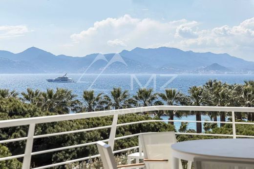 Diese 110m2 große Wohnung befindet sich im 6. und vorletzten Stock einer Residenz an der Croisette und bietet einen Panoramablick auf das Meer, die Bucht von Cannes und die Hügel des Esterel.