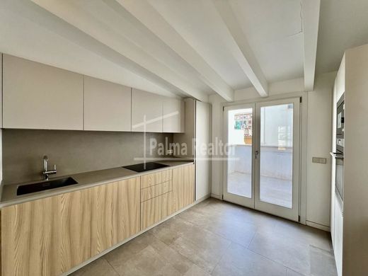 Dieses Duplex befindet sich in Passeig del Born, 07012, Palma, Illes Balears, Es ist eine Wohnung im vierten und fünften Stock in einem emblematischen Gebäude von 1925 und renoviert im Jahr 2018 mit ausgezeichneten Qualitäten. Es besteht aus 165m2 bewohnbar plus 16m2 Terrasse auf der Rückseite und 20m2 Französisch Balkon auf der Vorderseite. Auf der ersten Etage hat es drei Schlafzimmer (ein großes Doppelzimmer, ein weiteres, das mehr Büro-Typ und ein weiteres kleineres Doppelzimmer, zwei von ihnen mit Einbauschränken) und zwei Bäder. Auf der zweiten Etage befindet sich das Wohnzimmer mit einem großen Balkon, Bad und Küche mit Terrasse auf der Rückseite.