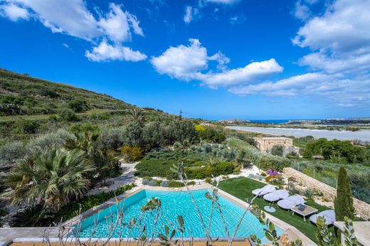 Ein einzigartiges, luxuriös ausgestattetes Bauernhaus in dem kleinen Weiler Bingemma in Mgarr, auf einem 4.600 m² großen Grundstück auf einer Anhöhe gelegen, mit spektakulären Sonnenuntergängen und freiem, ruhigem Blick auf die Landschaft, der sich bis zum Meer und darüber hinaus erstreckt. Eine sehr private, exklusive Residenz mit einer Auffahrt, die zu einem offenen Parkplatz führt, der von Gärten umgeben ist. Das Anwesen besteht aus einer offenen Küche mit breiter Front, einem Wohn- und Essbereich, von dem aus man die freie Aussicht genießt und auf den strandähnlichen Swimmingpool und den Terrassenbereich hinausgeht, drei Schlafzimmern, alle mit eigenem Bad, und einer verbundenen Garage. Im Obergeschoss befindet sich ein Penthouse/Appartement mit eigenem Eingang, einer offenen Küche, einem Wohn- und Essbereich, der zu einer geräumigen Terrasse führt, und einem Hauptschlafzimmer mit eigenem Bad. Im Untergeschoss gibt es einen großen Kinoraum, eine weitere voll ausgestattete Küche, zwei Schlafzimmer mit hohen Fenstern, ein Badezimmer, ein Büro und einen Fitnessraum. Dieses Haus ist hochwertig ausgestattet, mit Fußbodenheizung in allen Badezimmern, zwei Kaminen, einem Whirlpool und Schallisolierung. Alle Etagen sind mit einem Aufzug erreichbar. Ein seltener Fund, den Sie sich nicht entgehen lassen sollten.