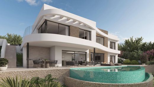 Bevor Sommer 2025 schlüsselfertig. Neue Villa in Anbau mit Meerblick in einer begehrten Gegend von Moraira. Diese Luxusvilla befindet sich in einem neuen Viertel von Moraira mit Kanalisation, öffentlicher Straßenbeleuchtung und unter den Grund gelegenen Stromkabeln. Die mit hochwertigen Materialien erbaute Villa bietet einen freien Blick auf das Meer. Fordern Sie weitere Informationen in unserem Geckovillas Real Estate-Büro in Moraira an.
