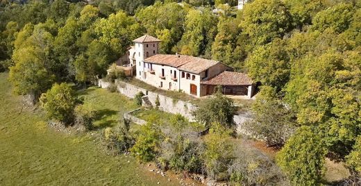BARNES präsentiert diese historische katalanische Masia, La Batllia, ein prächtiges Landhaus in den Ausläufern der Pyrenäen. Dieses architektonische Juwel vereint auf perfekte Weise rustikalen Charme, kulturelles Erbe und einen atemberaubenden Panoramablick, der sich von der Hochebene bis zum Meer erstreckt. Das aus Stein erbaute und auf einer Höhe von 1.040 Metern gelegene Anwesen bietet eine bezaubernde Kulisse, die durch das sanfte Plätschern seiner natürlichen Quelle noch verstärkt wird. La Batllia erstreckt sich über 769 m² (8.800 Quadratfuß), einschließlich eines 64 m² (780 Quadratfuß) großen Gästehauses, und wurde von seinen derzeitigen Eigentümern – Experten für Geschichte, Archäologie, Antiquitäten und Design – sorgfältig erhalten, denen es gelungen ist, seine Authentizität zu bewahren. Das Haupthaus verfügt über fünf Schlafzimmer, drei Badezimmer, ein großes Wohnzimmer, ein Esszimmer und eine Küche. Teile des Gebäudes stammen aus dem 17. Jahrhundert und ein vierstöckiger Turm aus dem 19. Jahrhundert bietet eine atemberaubende Aussicht. Das freistehende Gästehaus verfügt über einen offenen Wohnbereich, ein Badezimmer, einen originalen Brotbackofen und einen privaten Garten, sodass Besucher völlige Unabhängigkeit genießen und gleichzeitig das gleiche außergewöhnliche Panorama genießen können. Ganz im Sinne traditioneller katalanischer Masias beherbergte das Erdgeschoss einst die Tiere, während die Familie im Obergeschoss wohnte. Bemerkenswerte historische Merkmale wie Futtertröge und ein prächtiger gotischer Bogen aus dem 14. Jahrhundert, der einst als Eingang zum ursprünglichen Haus diente, sind erhalten geblieben. Dieser Bereich bietet zukünftigen Eigentümern interessante Renovierungsmöglichkeiten. Das Anwesen liegt auf einem weitläufigen, 66.000 m² großen Grundstück und wird saisonal von Pferden und Kühen beweidet. Es bietet viele ruhige Ecken, um die umliegende Natur zu genießen. Dank der idealen Lage, nur 10 Minuten vom mittelalterlichen Dorf Camprodón und 40 Minuten von einem großen Skigebiet entfernt, bietet es einen perfekten Rückzugsort, der Privatsphäre mit Zugang zu Annehmlichkeiten verbindet. Drei benachbarte Stadtgrundstücke sind im Preis inbegriffen. Für weitere Informationen kontaktieren Sie uns oder besuchen Sie www.barnes-barcelona.com.