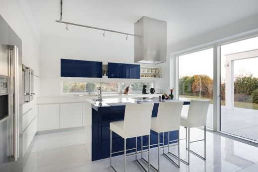 Hochwertige Ausstattung: weißer und schwarzer Marmor in Unter- und Erdgeschoss sowie Bädern, Parkett in privaten Bereichen, Fußbodenheizung/-kühlung, offener Kamin, bodentiefe Innentüren, Maß-Einbau- und Schuhschränke (Steininger), Wäscheabwurf auf allen Etagen, BUS-System, voll klimatisiert, barrierefrei, automatische Gartenbewässerung, energieeffiziente Gas-Brennwerttherme (optional Wärmepumpe).