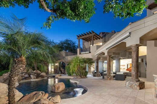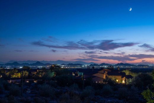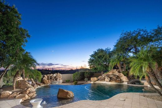 Dieses privat abgeschlossene 9.600 Quadratfuß große Haus bietet ein außergewöhnliches Wohnerlebnis. Sein zeitloses Interieur zeichnet sich durch moderne Oberflächen, luxuriöse Texturen und weitläufige Räume aus, die durch die 7.000 Quadratfuß breiten Dielenböden aus französischer Eiche harmonieren. Die Küche ist mit hochmodernen Geräten, einer geräumigen Insel für Ihre kulinarischen Unternehmungen und einem stilvollen, geschlossenen, verglasten Weinkeller für über 200 Flaschen ausgestattet. Das Haupthaus verfügt über eine Garage für 4 Autos, vier Schlafzimmer mit eigenem Bad, zwei Arbeitszimmer, ein Spielzimmer und ein Medienzimmer, das sich nahtlos in Ihr Leben im Freien in Arizona einfügt. Das Gästehaus bietet einen privaten Rückzugsort und das freistehende Gebäude mit dem Studio des Hausmeisters umfasst eine klimatisierte Garage für 2 Autos und eine Garage für 4 Autos, die perfekt für Sammler ist. Das Haus liegt in Merit Crossing auf 3,8 Acres mit Blick auf den Pinnacle Peak Mountain. Architekturzeichnungen für eine zukünftige Spielzeugscheune für die freistehende Garage und das Studio des Hausmeisters sind vor Ort verfügbar. Diejenigen, die sich einen nahtlosen Übergang ins Luxusleben wünschen, werden die sorgfältig zusammengestellte Liste der Möbel zu schätzen wissen, die auf einem separaten Kaufvertrag erhältlich sind und so ein unvergessliches schlüsselfertiges Erlebnis garantieren.
