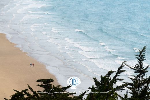 Kommen Sie und entdecken Sie dieses Anwesen in einer ruhigen Gegend der Stadt Erquy, in der Nähe des Strandes Caroual und des Zentrums von Erquy. Außergewöhnliches Anwesen mit atemberaubendem Panoramablick auf das Meer über die Bucht von Saint-Brieuc und die Pointe du Verdelet. Die aus der ersten Hälfte des 20. Jahrhunderts stammende Villa hat die Zeit überdauert und bewahrt auch heute noch mit dem rosa Sandstein, den Parkettböden und den alten Zementfliesen den Charme des Alten. Der Eingang wird durch eine Außentreppe mit abgerundeten Formen angedeutet, die auf einer Seite zu einem schönen, hellen und geräumigen Wohnzimmer führt. Die dominierende Aussicht vom Wohnzimmer bietet eine außergewöhnliche, atemberaubende Kulisse, die es Ihnen ermöglicht, die Landschaft im Sommer wie im Winter zu genießen. Eine separate Küche mit Wasseranschluss bietet Zugang zum hinteren Garten. Auf der Nachtseite profitiert ein 13 m² großes Schlafzimmer auch von einem außergewöhnlichen Meerblick. Ein separates Duschbad und eine Toilette vervollständigen diese Ebene. Die erste Etage, die über eine antike Holztreppe erreichbar ist, verfügt über 4 geräumige Schlafzimmer zwischen 10 und 15 m² sowie einen gemeinsamen Wasseranschluss. Die Treppe ermöglicht weiterhin den Zugang zum Dachboden und lässt die Fantasie einer zukünftigen Entwicklung zu. Ein 615 m² großes, eingezäuntes und mit einer majestätischen Lambert-Zypresse bepflanztes Grundstück rundet das Ganze ab. Große Arbeiten sind geplant. Wohnungen mit übermäßigem Energieverbrauch, DPE F, Geschätzte jährliche Kosten: zwischen 3.440 und 4.700 € pro Jahr (indexiert ab 1. Januar 2021). Preis: 720.000 € Nettoverkäufer oder 748.800 € Maklergebühren inklusive (4 % Käufergebühr) Informationen zu den Risiken, denen diese Immobilie ausgesetzt ist, finden Sie auf der Géorisks-Website: www.georisks.gouv.fr Risiko- und Verschmutzungsstatus: NEIN