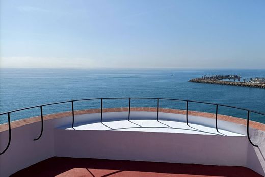 Auf einer atemberaubenden Klippe in Sitges gelegen, bietet Casa Torreón, auch bekannt als Torre Freixa, ein unvergleichliches Erlebnis mit Panoramablick vom Garraf-Massiv bis nach Vilanova i la Geltrú. Diese exklusive Residenz an der Mittelmeerküste verbindet die Ruhe des Meeres mit einer privilegierten Lage mit Blick auf den Hafen von Aiguadolç und das charmante Dorf Sitges. Das Haus erstreckt sich über fünf Etagen und verfügt über eine spektakuläre Meeresterrasse, Wohnräume, die durch breite Arkaden miteinander verbunden sind, und einen runden Speisesaal im Turm mit atemberaubender Aussicht. Die Zimmer, die alle zum Meer hin ausgerichtet sind, vermitteln das Gefühl, sich auf einem Boot zu befinden, das von den Wellen geschaukelt wird. Die Sonnenterrasse und die runde Aussichtsplattform im Turm bieten einen außergewöhnlichen 360-Grad-Blick auf das Meer und die Küste. Der Garten mit seiner mediterranen Vegetation und den überdachten Terrassen ist ein idealer Ort, um sich zu entspannen und die Natur zu genießen. Er verfügt über einen handgefertigten Steingrill und die Möglichkeit, einen Swimmingpool mit Meerblick zu installieren. Casa Torreón ist eine Residenz des Meeres und für das Meer, in der jeder Winkel so gestaltet ist, dass man die Erfahrung, direkt am Mittelmeer zu leben, maximieren kann. Ideal für alle, die Exklusivität, Ruhe und eine einzigartige Verbindung zur Natur suchen. Verpassen Sie nicht die Gelegenheit, diese außergewöhnliche Immobilie in einer der begehrtesten Lagen an der Mittelmeerküste zu erwerben.