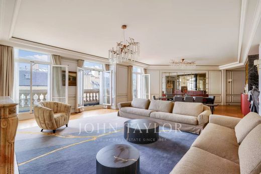 Paris 8. Im Herzen des Goldenen Dreiecks zwischen Seine und Place François 1er. Wir bieten Ihnen im fünften Stock eines eleganten Gebäudes eine hervorragende Empfangswohnung mit einer Fläche von 278 m², luxuriös renoviert und mit Balkonen mit freiem Blick auf den Place François 1er, die Seine und zahlreiche Sehenswürdigkeiten von Paris. Es setzt sich wie folgt zusammen: - Eingangsgalerie - sehr großes Doppel-Empfangszimmer mit Esszimmer und Bar - großes Heimkino-Fernsehzimmer - geräumige Wohnküche - mit Blick auf die Rue François 1er, eine schöne Master-Suite mit großem Badezimmer und geräumigem Ankleidezimmer und ein zweites Schlafzimmer mit Badezimmer - Blick auf den Innenhof, zwei Schlafzimmer mit Badezimmern und Ankleidezimmern. Sehr geräumig. Klimatisiertes Apartment, luxuriös renoviert in einem eleganten, modernen Stil. Zwei Keller, ein Dienstschlafzimmer und ein Abstellraum runden dieses Angebot ab.
