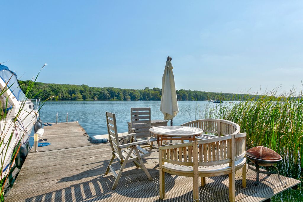 Das Grundstück liegt direkt am Kalksee, einem besonders sauberen Badesee, der im Jahr 2002 mit der blauen EU-Flagge für seine hervorragende Wasserqualität ausgezeichnet wurde. Ein breiter Bootssteg bietet Platz für zwei Boote und ermöglicht einen direkten Zugang zum See.