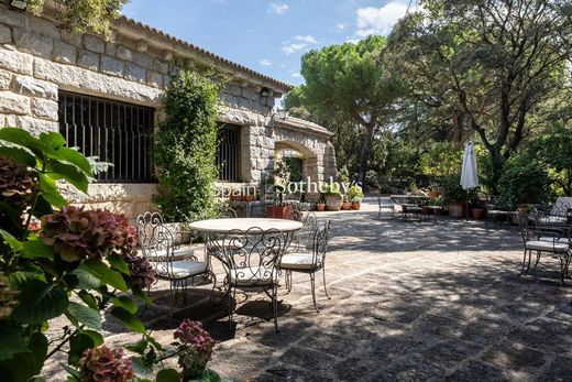 Entdecken Sie einen Ort, an dem die Natur in ihrer ganzen Pracht erstrahlt: 81 Hektar reine Gelassenheit, umgeben von Eichen, Pinien, Zedern und Wacholder sowie dem Duft des heimischen Lavendels. Dieses Juwel in der Sierra Noroeste de Madrid bietet einen einzigartigen Rückzugsort mit unvergleichlichem Blick auf den Monte Abantos. Auf diesem Anwesen stehen Ruhe und Natur im Mittelpunkt: Reiher und Störche besuchen den Teich, ebenso wie Hasen, Kaninchen und Wildschweine, die das Gelände durchstreifen und diesen Ort zu einem Refugium für die Tierwelt machen. Das Gelände eignet sich ideal für Pferdeliebhaber. Es verfügt über Stallungen, die modernisiert werden können, und große Weiden, die dazu einladen, die Freiheit auf dem Land zu genießen, ohne dabei auf alles verzichten zu müssen. Das Anwesen ist direkt mit der umgebenden Natur verbunden durch den umliegenden Königsweg, der Reitausflüge ermöglicht und ideale Routen bietet, um die Schönheit der Landschaft zu entdecken. Nur wenige Schritte entfernt bieten die Dienstleistungen einer kleinen Ortschaft Bequemlichkeit und Zugänglichkeit im täglichen Leben, ohne den Zauber eines natürlichen Oasen im Herzen des Gebirges zu verlieren. Es gibt mehrere Brunnen, sowie den Teich, der mit Regenwasser und Grundwasser gespeist wird. Die Bewässerung von Beeten und Pool ist größtenteils dank dieser Ressourcen möglich. Das Anwesen beherbergt zwei historische und charaktervolle Gebäude: ein nobles Haus, das in ein Luxus-Wohnhaus, ein Gästehaus und ein Hausmeisterhaus umgewandelt werden kann, ideal für Gäste und Vertrauenspersonen. Außerdem gibt es einen Swimmingpool mit Umkleideräumen, einen Fronton und einen Padelplatz. Ohne auf modernen Komfort zu verzichten, können Sie ein geräumiges und komfortables Haupthaus genießen, mit Räumen, die für familiäre Momente oder den Empfang von Besuchern gestaltet sind. Geselliges Leben ist ebenfalls Teil des Lebensstils auf dem Anwesen: Treffen am Pool, Sportnachmittage auf dem Fronton oder Padelplatz und Abendessen unter freiem Himmel auf den weitläufigen Veranden des Hauses. Die Hauptwohnung wurde 1945 erbaut und umfasst 611,47 m2 auf zwei Etagen. Das Hauptgeschoss, das 445,06 m2 groß ist, besteht aus einem Eingangsbereich, Küche mit Arbeitsbereich und Wäsche, Esszimmer, mehreren Salons, einem Wäschezimmer, 5 Schlafzimmern und 4 Bädern. Die Verandafäche beträgt 123,18 m2. Im Erdgeschoss, das 166,41 m2 groß ist, gibt es ein Wohnzimmer, einen Flur, einen Weinkeller, ein Badezimmer und zwei Schlafzimmer. In einem anderen Bereich des Erdgeschosses und mit direktem Zugang von außen befindet sich ein Arbeits-/Studienzimmer mit Badezimmer. Die Verandafäche beträgt 79,61 m². Gästewohnung von 159 m2, bestehend aus einem Eingangsbereich, einem Wohnzimmer, einer Küche, einer Speisekammer, 3 Bädern und 4 Schlafzimmern (das Hauptschlafzimmer mit eigenem Bad). Haus des Hausmeisters von 78,42 m2, bestehend aus einem Wohnzimmer, einem Esszimmer, einem Badezimmer, einer Küche und zwei Schlafzimmern. Poolpavillon von 99,65 m2 mit zwei Umkleidekabinen und Bädern sowie einem Salon. Das Ensemble wird durch verschiedene Nebengebäude vervollständigt: eine Scheune (120,51 m2), einen Stall-Lagerraum (20,79 m2), ein Hühnerstall (107,73 m2), zwei Hundehütten, Schweineställe, eine Spiel-/Garage (60,51 m2), eine Lagerhalle (20,43 m2), einen Transformatorraum und eine Gartenhütte. Perfekt verbunden mit der Hauptstadt Madrid, nur 33 km entfernt, aber versteckt in ihrem eigenen Paradies, ist dieses Anwesen ein Schatz für diejenigen, die das Leben in vollen Zügen genießen möchten, umgeben von reiner Natur, ohne auf modernen Komfort zu verzichten. Machen Sie dieses Anwesen zu Ihrem perfekten Rückzugsort, wo die Schönheit der Umgebung und die Möglichkeit, in einer städtischen Umgebung zu leben, eine einzigartige und unvergleichliche Kombination bilden.
