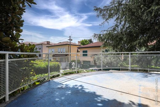 Nur wenige Meter von der Piazzale S. Croce und dem Prato della Valle entfernt, im Viertel Madonna Pellegrina, elegante Einzelvilla auf einem 700 m2 großen Grundstück mit 550 m2 großem Garten. Erdgeschoss mit großer Garage, 50 m2 Veranda, Immobilieneinheit mit separatem Eingang H: 2,60 m bestehend aus 3 Zimmern (vorhandenes Badezimmer-Kochnische, Schlafzimmer mit Doppelbett), die problemlos als Wohnung genutzt werden kann. Wohnung im ersten Stock mit 3 m Höhe, zugänglich über eine Innen- und Außentreppe, bestehend aus Eingangshalle, Wohnzimmer mit großer Terrasse, Flur, Küche, 4 Schlafzimmern, 2 Badezimmern mit Fenstern. Eine Innentreppe führt zur Terrasse auf dem Flachdach über die gesamte Geschossfläche. Wertvolle Immobilie. Sofortige Verfügbarkeit.--dfdb9b5ea741667b836a41bc68a4db2c!