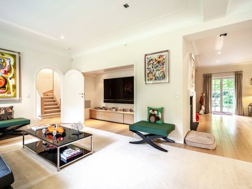 Im Herzen des Viertels Prince d'Orange besteht dieses charmante Familienanwesen aus einem Haupthaus mit rund 555 m² Bruttofläche, umgeben von einem riesigen 5.077 m² großen angelegten Garten, der von Jacques Wirtz entworfen wurde und über einen Swimmingpool und ein Poolhaus verfügt. Das 2014 renovierte Haus erfüllt alle aktuellen technischen Standards und behält gleichzeitig seinen Charakter. Das Erdgeschoss verfügt über große offene Empfangsräume, die auf eine große Terrasse und den Garten führen, eine von Gaggenau und Miele ausgestattete Bulthaup-Küche sowie eine Speisekammer und ein Familienzimmer. Im Obergeschoss befinden sich ein Hauptschlafzimmer mit offenem Kamin, Ankleidezimmer, Badezimmer, Arbeits- und Fernsehzimmer und ein zweites Schlafzimmer mit eigenem Duschbad. Die 2. Etage besteht aus zwei Suiten, jede mit Schlafzimmer, Wohnzimmer, Badezimmer und Spielzimmer. Die 3. Etage verfügt über ein Dienstmädchenzimmer mit eigenem Bad. Das Poolhaus verfügt über ein Wohnzimmer, einen Whirlpool und ein Duschbad. Weitere Merkmale: thermoakustische Doppelverglasung, Audiosystem, konforme Elektrik, Alarm, Keller, klimatisierter Weinkeller, Hauswirtschaftsraum, Heizkessel von 2019, Dachboden zur Lagerung, umzäunter Garten, Garage für 2 Autos, Obst- und Gemüsegarten. Le Prince d'Orange liegt ideal zwischen Uccle und Rhode-Saint-Genèse. Es ist ein angenehmes Viertel, das eine grüne und ruhige Umgebung bietet und gleichzeitig in der Nähe aller Annehmlichkeiten liegt. Schulen sind in der Nähe. Für weitere Informationen wenden Sie sich bitte an Corinne Thumelaire unter +32 (0) 498 237 935.