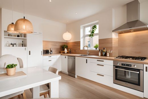 Dieses freistehende Haus in einem ruhigen Wohngebiet in Kerschoten besticht durch seine moderne Architektur, großzügige Raumaufteilung und Vielseitigkeit. Die Lage verbindet eine freundliche Nachbarschaft mit hervorragender Anbindung an Geschäfte, Schulen, Sportanlagen und das Zentrum von Apeldoorn. Mit dem Fahrrad, dem Auto oder den öffentlichen Verkehrsmitteln erreichen Sie Ihr Ziel in wenigen Minuten. Mit einer Wohnfläche von nicht weniger als 230 m² bietet diese Immobilie außergewöhnlich viel Platz zum Wohnen und Arbeiten. Das Haus wurde 1987 von einem Architekten als sein eigenes Zuhause entworfen und gebaut, was sich in der hohen Bauqualität und der durchdachten Raumaufteilung widerspiegelt. Die Eingangshalle mit Doppeltüren führt zu einem geräumigen T-förmigen Wohnzimmer und einer geräumigen Wohnküche, beide mit Fußbodenheizung. Das Gartenzimmer, die isolierte ehemalige Garage, sechs Schlafzimmer und zwei Badezimmer machen das Haus multifunktional. Die vielen Fenster sorgen für viel Licht und tragen zu einem angenehmen Wohnklima bei. Der Garten ist ein großer Pluspunkt dieser Immobilie. Nach Süden ausgerichtet und an eine gemeinschaftliche Grünfläche mit Teich angrenzend, bietet der hintere Garten Ruhe, Privatsphäre und ganztägigen Sonnenschein. Die große Terrasse führt zu einem attraktiven Pavillon mit Sitzecke. Außerdem gibt es einen verspielten, drachenförmigen Swimmingpool, einen Grillplatz und einen geräumigen Holzschuppen. Dank des pflegeleichten Designs lässt sich der Garten einfach anlegen und pflegen. Das Grundstück verfügt über zwei Einfahrten. Rechts vom Haus führt eine Einfahrt zur Garage mit Platz für zwei Autos. Links befindet sich eine große Einfahrt für mindestens vier Autos. Hinter dem doppelten Holztor befindet sich seitlich der separate Fahrradschuppen. Im Jahr 2023 wurde die Außenfassade des Hauses professionell gestrichen, der Vorgarten neu gestaltet und Pavillon und Schuppen neu überdacht. Die Aufteilung: An der Vorderseite des Hauses befindet sich die geräumige Wohnküche mit einem charmanten dreieckigen Erkerfenster. Die cremeweiße Küche mit Edelstahlakzenten ist mit integrierten Geräten ausgestattet: 5-Flammen-Gasherd, Dunstabzugshaube, Kombi-Backofen, Geschirrspüler und Kühlschrank. Ein großer Esstisch mit 10 Stühlen und ein Sideboard laden zum Kochen und gemütlichen Beisammensein ein. Das angrenzende Wohnzimmer bietet mehrere Sitzmöglichkeiten. Ein moderner Gaskamin bildet den Mittelpunkt, während Schiebetüren direkten Zugang zum hinteren Garten bieten. Angeschlossen ist das Gartenzimmer mit Klimaanlage und Wärmetauscher. Dieses komfortable Zimmer eignet sich hervorragend als zweite Sitzecke, Fernsehzimmer oder Home-Office. Die ehemalige Garage ist vollständig isoliert und beheizt. Sie wird derzeit als Hauswirtschaftsraum mit Anschlüssen für Wäsche, Bügeln und zusätzlichen Stauraum genutzt. Angrenzend befindet sich das Arbeitszimmer, das als Heimpraxis mit separatem Eingang genutzt werden kann. Es eignet sich auch als Doppelbüro oder Werkstatt. Im ersten Stock befinden sich vier Schlafzimmer und zwei Badezimmer. Das Hauptschlafzimmer im hinteren Bereich hat Schiebetüren zur L-förmigen Dachterrasse. Das Zimmer verfügt über eine maßgefertigte Schrankwand über die gesamte Länge. Angrenzend befindet sich das En-Suite-Badezimmer mit Badewanne, Waschbecken und Marmoroberfläche. Es ist funktional und im Originalzustand. Das zweite Badezimmer wurde kürzlich renoviert (2023) und verfügt über eine ebenerdige Dusche, einen Waschtisch, eine Toilette und Fußbodenheizung. Zwei der vorderen Schlafzimmer haben über das Erkerfenster Zugang zum Balkon. Das vierte Schlafzimmer dient derzeit als Ankleidezimmer. Der zweite Stock ist überraschend geräumig und verfügt über zwei geräumige Schlafzimmer, die dank des hohen Dachfirsts ein angenehmes Wohngefühl vermitteln. Der Treppenabsatz verfügt über ein großes Dachfenster sowie Anschlüsse für Waschmaschine und Zentralheizung. Dieses Haus vereint Raum, Komfort und Architektur auf besondere Weise. Die dezente Fassade bildet einen schönen Kontrast zur Offenheit und Helligkeit des Innenraums. Ob Sie eine große Familie haben, von zu Hause aus arbeiten oder einfach nur großzügigen Wohnraum suchen – diese Immobilie bietet alles. Sind Sie neugierig, was dieses Haus zu bieten hat? Dann vereinbaren Sie gerne einen persönlichen Besichtigungstermin.