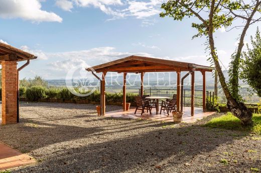 Neben dem großen Garten, der das Haupthaus und das Nebengebäude umgibt, umfasst das Anwesen 5,7 Hektar, die sich auf einen Olivenhain mit ca. 700 Bäumen, einen Weinberg und einen Wald verteilen, sowie ein im Bau befindliches Schwimmbad, das sich in der Panoramalage des Anwesens befindet.