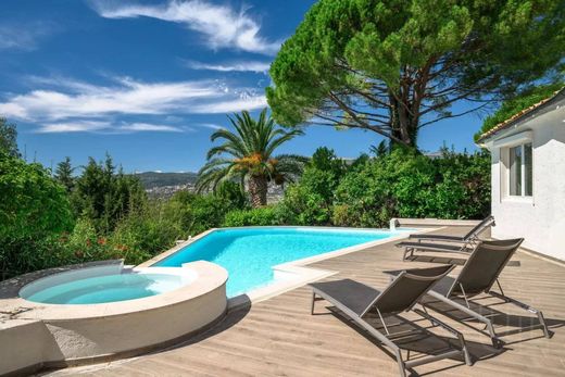 In der Nähe von Mougins – Prächtige Villa in einem geschlossenen Anwesen. In dominanter Lage mit Blick auf die Esterel-Hügel, in einer sicheren Umgebung, wurde diese prächtige, von Couëlle inspirierte Villa mit ca. 620 m2 Wohnfläche komplett in einem sehr modernen Stil renoviert. Sie bietet schöne und helle Empfangsräume mit Zugang zur Terrasse, zum Swimmingpool und zum angelegten Garten von ca. 2730 m2. Dieses majestätische Anwesen verfügt außerdem über 6 Schlafzimmer, darunter eine Master-Suite mit 2 Ankleidezimmern und einem großen Badezimmer mit Dusche. 4 Garagen und Zugang zu den Einrichtungen (Tennis und Swimmingpools) von Castellaras le Vieux.