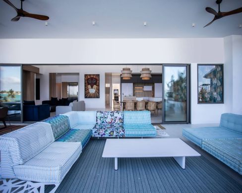 Entdecken Sie ein Meisterwerk der Eleganz und Raffinesse im Herzen von Pointe aux Canonniers, wo Sie atemberaubende Ausblicke auf die glitzernde Lagune und den ikonischen Coin de Mire erwarten. Dieses außergewöhnliche, nach Norden ausgerichtete Penthouse mit 4 Schlafzimmern ist pures Prestige, entworfen, um zu fesseln und zu beeindrucken. Ein privater Aufzug bringt Sie direkt zu dieser exquisiten Residenz, wo Sie vom ersten Moment an eine Atmosphäre der Erhabenheit umgibt. Das prächtige Wohnzimmer mit seinen 5 Meter hohen Decken erstreckt sich über beeindruckende 100 m² und wird durch große Öffnungen, die den Innen- und Außenbereich nahtlos verbinden, mit natürlichem Licht durchflutet. Mit 4 Schlafzimmern mit eigenem Bad, darunter drei mit weitreichendem Meerblick, wurde jedes Detail dieses Penthouses für höchsten Komfort und Luxus gestaltet. Die Master-Suite verfügt über ein Hamam, das eine zusätzliche Note verleiht. Die von einer Luxusmarke entworfene Küche ist sowohl modern als auch funktional, während die Möbel von Luxusmarken wie Roche Bobois eine raffinierte und zeitlose Eleganz vermitteln. Treten Sie hinaus auf die 298 m² große Terrasse, eine wahre Oase der Ruhe. Hier finden Sie einen wunderschönen Swimmingpool, elegante Lounges im Freien, ein großes Esszimmer mit Außenküche und einen Panoramablick, der einfach faszinierend ist. Diese magische Umgebung lädt Sie ein, sich zu entspannen, zu unterhalten und unvergessliche Erinnerungen zu schaffen, und das alles mit Blick auf den azurblauen Ozean. Dieses neu gebaute und im Jahr 2024 fertiggestellte Penthouse bietet ein sorgfältiges Design, außergewöhnliche Helligkeit und ein Maß an Raffinesse, das es auszeichnet. Es befindet sich in einer sicheren, exklusiven Residenz mit Fitnessstudio an einem der begehrtesten Orte der Insel und ist zweifellos eines der begehrtesten Immobilienjuwelen auf Mauritius. Ein Juwel der Perfektion für diejenigen, die einen außergewöhnlichen Lebensstil suchen. Kontaktieren Sie uns, um Ihre private Besichtigung zu vereinbaren.