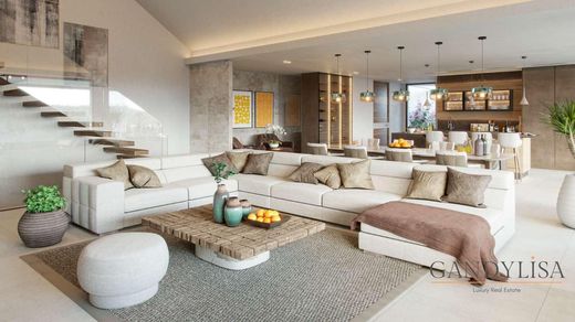 Anlage, verfügt über eine bebaute Gesamtfläche von 561 m². Die offenen Wohnräume sind durchgehend mit raumhohen Glasfenstern ausgestattet, die mit natürlichem Licht durchflutet sind und einen atemberaubenden Panoramablick bieten. Die im Preis inbegriffene