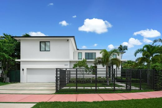 Diese außergewöhnliche Residenz befindet sich in Miami Beachs prestigeträchtigem Viertel Lakeview auf einem 1590 m² großen Doppelgrundstück und bietet das ultimative Luxusleben. Das im Jahr 2022 fertiggestellte Haupthaus verfügt über 4 Schlafzimmer, 5,5 Bäder, ein Büro und eine Profiküche mit Geräten von Wolf & Sub-Zero, Doppelinseln, einer Speisekammer und einem Weinkühlschrank in voller Höhe. Eine 84 m² große Terrasse, ein Gästehaus mit 1,5 Bädern, eine Sommerküche, ein großer Pool mit Whirlpool und das Control4 Smart Home-System vervollständigen das Anwesen. Nur wenige Minuten von Miamis besten Einkaufsmöglichkeiten, Restaurants und gesellschaftlichen Szenen entfernt ist dieses Haus für nahtloses Wohnen im Innen- und Außenbereich vom Feinsten konzipiert.