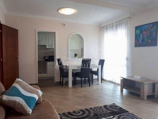77046 Ein großes, vierstöckiges Haus in Sutomore, Zagradje, steht zum Verkauf. Das Haus bietet eine Gesamtfläche von 500 m² inklusive Terrassen. Die Wohnfläche beträgt 450 m². Das Grundstück ist 600 m² groß, kann aber bei Bedarf erweitert werden. Es gibt Parkplätze für mehrere Autos und Platz für einen Swimmingpool. Das gepflegte, umzäunte Grundstück ist mit Rasen, Bäumen, Sträuchern, Weinreben und Blumen bepflanzt. Die Aufteilung des Hauses: Das Erdgeschoss ist ein offener Wohnbereich mit Hauswirtschaftsraum. Die zweite, dritte und vierte Etage bestehen aus jeweils drei möblierten Apartments mit separatem Eingang (Terrasse, Flur, Badezimmer, Wohnzimmer, Küche, 2 Schlafzimmer). Von jeder Etage genießt man einen Panoramablick auf das Meer. Ein großer Wassertank mit 80 m³ Fassungsvermögen sorgt für eine autarke Wasserversorgung, unabhängig vom städtischen Wassernetz. Jede Etage verfügt über einen eigenen Stromzähler. Die vierte Etage wird mit einer elektrischen Heizung und einem Kaminofen im Wohnzimmer beheizt. Alle Etagen sind klimatisiert. Ideal für ein Aparthotel. Erweiterungspotenzial vorhanden. Bar ist 8 km entfernt, Malevik Beach 2 km und Sutomore 3 km.