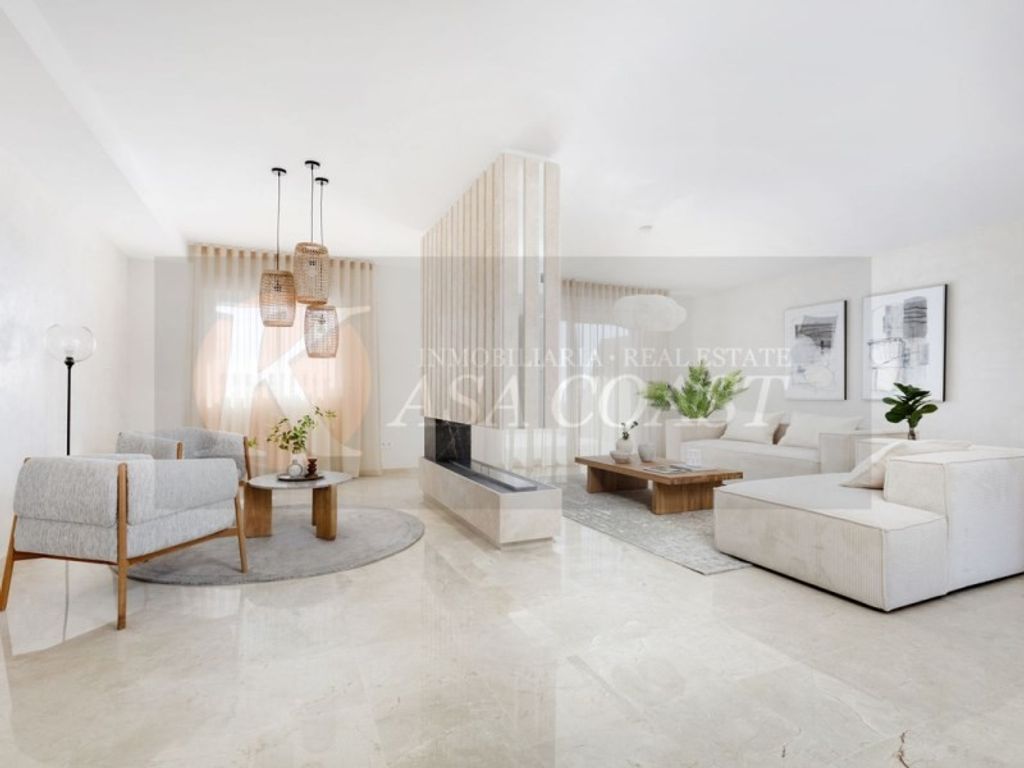 Mit einer Gesamtflache von 170 m² bietet es ein geraumiges und helles Wohn-Esszimmer mit großen Fenstern und direktem Zugang zur Hauptterrasse, perfekt, um das Klima der Costa del Sol zu genießen. Die offene Kuche ist komplett mit hochwertigen Geraten ausgestattet. Es verfugt uber drei Außenschlafzimmer mit Einbauschranken, wobei das Hauptbadezimmer en suite ist, und zwei extra moderne Badezimmer mit Designer-Duschen.