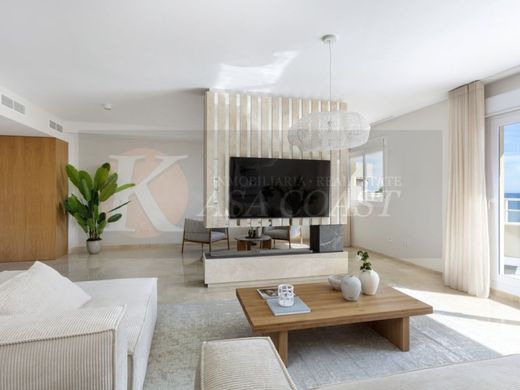 Exklusives Penthouse in Carvajal, Fuengirola, nur 200 Meter vom Strand entfernt, mit atemberaubendem Panoramablick auf das Meer und die Berge. Dieses spektakulare Haus wurde komplett mit hochwertigen Materialien und einem modernen Design renoviert, das Komfort und Eleganz vereint.