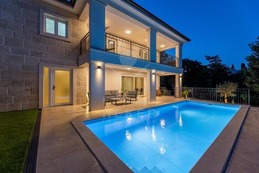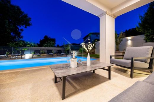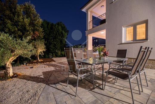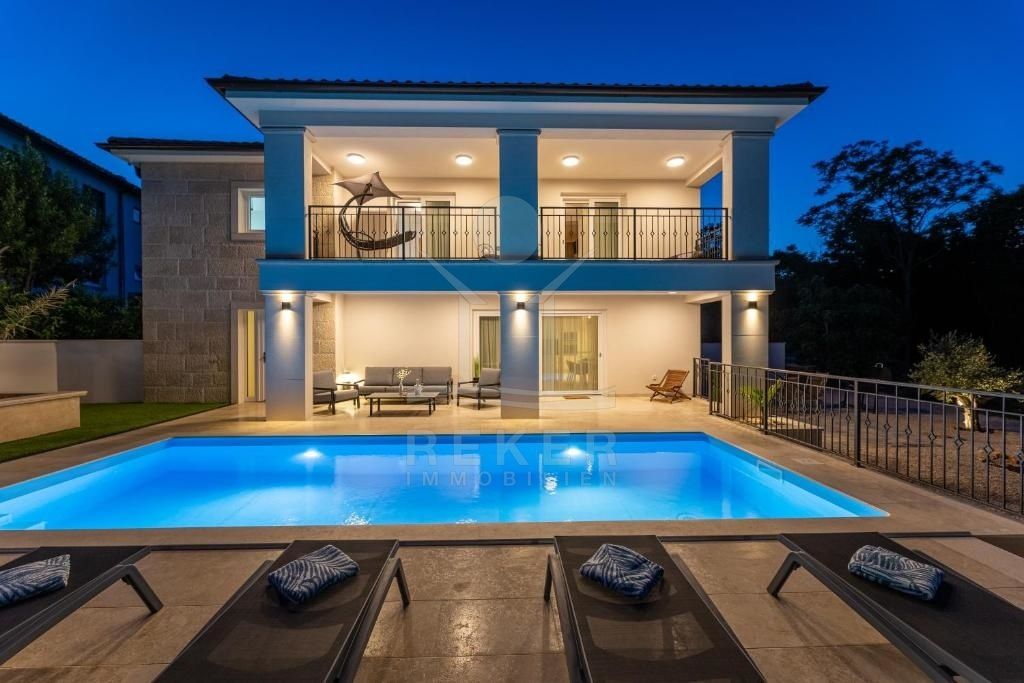 Erleben Sie das Inselleben in seiner exklusivsten Form in dieser beeindruckenden Villa auf der malerischen Insel Krk. Nur wenige Schritte vom glitzernden Meer und Strand entfernt, bietet dieses Schmuckstück einen luxuriösen Rückzugsort mit einem einladenden Pool und einem großzügigen, erstklassigen Garten, ideal für entspannende Tage und gesellige Abende im Freien.