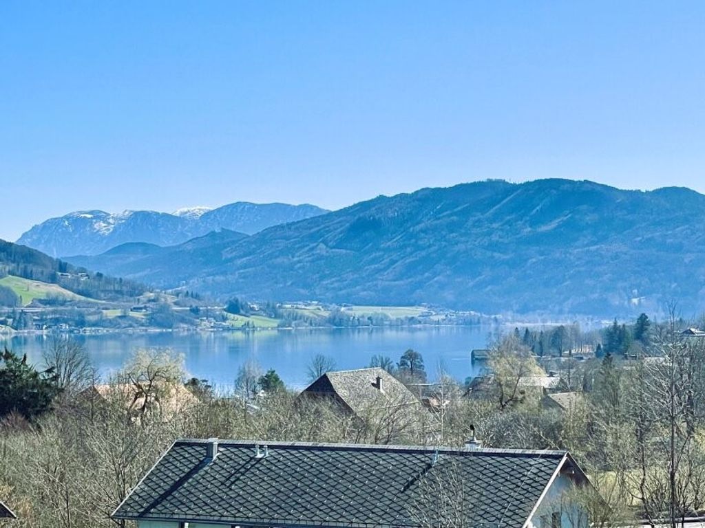 Hier erwerben Sie nicht nur eine Immobilie, sondern ein Lebensgefühl, das von der atemberaubenden Umgebung und fantastischen Ausblicken geprägt ist. Genießen Sie einen Panorama See- und Bergblick, der Ihnen jedes Mal aufs Neue ein Gefühl vom Wohnen und vielleicht auch Arbeiten im Paradies verleiht. Die majestätischen Berge und den Mondsee zum Greifen nah, 750m vom Strandbad Schwarzindien entfernt, ist es hier möglich, sich einen absoluten Wohntraum zu erfüllen, der Seinesgleichen sucht. Auch der Blick aus dem Wohn-Essbereich auf das Stift Mondsee und die Marktgemeinde sind mehr als sehenswert und verleihen Ihnen ein erhabenes Gefühl durch freie Sichtachsen und Weite.