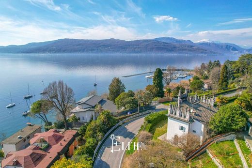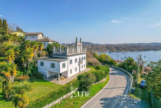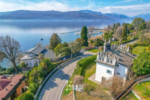 Im charmanten Dorf Leggiuno in der Region Arolo erhebt sich eine prächtige Villa aus der Mitte des 19. Jahrhunderts – ein wahres architektonisches Juwel, eingebettet in einen 2.000 Quadratmeter großen Privatpark. Dieses exklusive Anwesen, ursprünglich ein österreichisches Pulvermagazin, besticht durch seine einzigartige Fassade mit eleganten gotischen Türmen, Spitzbogenfenstern und neugotischen Details, die es selbst vom Lago Maggiore aus erkennbar machen. Der reinweiße Putz, die blauen Fensterläden und das geradlinige Erdgeschoss verleihen der Villa den Charme eines kleinen Schlosses. Das Anwesen erstreckt sich über eine Gesamtfläche von ca. 300 Quadratmetern auf mehreren Ebenen. Der Zugang erfolgt durch ein imposantes schmiedeeisernes Tor, das sich zu einer von Bäumen gesäumten Allee öffnet, die zum Haupteingang führt. Im Erdgeschoss befinden sich ein geräumiges und einladendes Wohnzimmer mit Kamin, ein elegantes Esszimmer, eine Wohnküche mit Speisekammer und ein Badezimmer mit Badewanne. Die Räume bewahren ihre originalen architektonischen Merkmale, wie Backsteingewölbe und Steintreppen. Über die charmante Steintreppe gelangt man in den Schlafbereich im ersten Stock, bestehend aus zwei Schlafzimmern mit atemberaubendem Blick auf den Lago Maggiore, einem kleinen Wohnzimmer und einem Badezimmer mit Badewanne und Dusche. Im Obergeschoss befindet sich ein zusätzliches Dachzimmer, das sich ideal als Arbeitszimmer oder weiteres Schlafzimmer eignet. Zur Villa gehört außerdem ein reizvolles Nebengebäude mit separatem Eingang, bestehend aus einem Wohnzimmer, einer Küche mit Seeblick, einem geräumigen Doppelzimmer und einem Badezimmer. Diese Wohnlösung ermöglicht es, die beiden Einheiten zu einem einzigen, noch größeren und funktionaleren Wohnsitz zu verbinden. Der die Villa umgebende Park ist perfekt angelegt und eben, ideal, um die außergewöhnliche Sonneneinstrahlung das ganze Jahr über zu genießen. Der großzügige Garten bietet Platz für den Bau eines Swimmingpools oder eines Tennisplatzes. Die Innenräume der Villa wurden 2011 renoviert, wobei die Elektro- und Sanitärinstallationen sorgfältig modernisiert wurden und gleichzeitig durch die Verwendung hochwertiger Materialien die historische Atmosphäre erhalten blieb. Die Böden sind aus Feinsteinzeug, und die Fenster sind doppelt verglaste Aluminiumfenster.--bc0d8e28d561f345459e997741405d42!