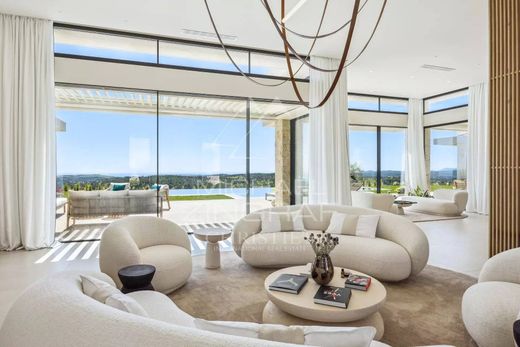 Großzügige Empfangsräume, spektakuläre Master-Suite, vier raffinierte Suiten, Kino, Fitnessraum, Weinkeller, separates Apartment, Garage und Parkplätze.