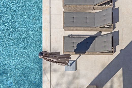 Das erste Obergeschoss besteht aus zwei Schlafzimmern mit eigenen Badezimmern und Zugang zu einer mit einer Pergola überdachten Terrasse. Der Innenhof ist im Ambiente- und Gartenstil gestaltet, und die vollständige Harmonie wird durch einen elegant gestalteten 40 m² großen Swimmingpool mit einem Sonnenbereich gewährleistet.