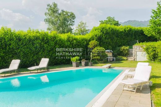 Exklusiv gelistet von BHHS Palazzo Estate – In herrlicher Panoramalage auf den Hügeln von Como präsentiert BHHS Palazzo Estate diese elegante, moderne Villa mit ca. 500 m² Wohnfläche, angelegtem Garten und exquisitem Infinity-Pool. Das Anwesen befindet sich in privilegierter Lage, nur wenige Minuten vom historischen Zentrum Comos entfernt und bietet bequemen Zugang nach Mailand und zur Schweizer Grenze. Diese elegante Residenz besticht durch ihre moderne Architektur, das reichlich vorhandene Tageslicht im gesamten Gebäude, die hochwertige Bauqualität und einen teilweisen, aber dennoch faszinierenden Blick auf den Comer See. Die Villa liegt inmitten eines privaten, sorgfältig gepflegten Gartens von ca. 800 m² mit altem Baumbestand, Ziersträuchern und einem einzigartigen Infinity-Pool – ein außergewöhnliches Merkmal für ein Anwesen so nahe am Zentrum von Como. Die Villa erstreckt sich über mehrere Ebenen, die alle elegant durch einen praktischen Innenaufzug verbunden sind. Das Erdgeschoss öffnet sich mit einem einladenden Foyer, das in ein großzügiges, dreistöckiges Wohnzimmer mit Kamin und großen, raumhohen Fenstern mit Blick auf den Garten führt. Auf dieser Ebene befinden sich außerdem ein formelles Esszimmer, eine geräumige Wohnküche und ein stilvolles Gäste-WC. Im ersten Stock befinden sich die Schlafräume, darunter eine luxuriöse Master-Suite mit Hauptschlafzimmer, begehbarem Kleiderschrank, privatem Arbeitszimmer und eigenem Bad mit Fenster. Darüber hinaus gibt es ein zweites Schlafzimmer mit eigenem Bad mit Fenster, zwei weitere großzügig geschnittene Schlafzimmer und ein weiteres Badezimmer, ebenfalls mit Fenster. Im zweiten Stock, der durch seine markante Dachgeschossarchitektur mit freiliegenden Holzbalken besticht, befindet sich ein charmantes, separates Gästeapartment mit Wohnbereich, Schlafzimmer und Bad mit Fenster – ideal für Gäste oder die Großfamilie in absoluter Privatsphäre. Das Souterrain ist den Hauswirtschafts- und Freizeiträumen gewidmet. Es umfasst einen gemütlichen Hobbyraum mit Kamin, einen voll ausgestatteten Fitnessbereich, ein Bad mit Fenster, eine Speisekammer mit Weinkeller sowie verschiedene Technik- und Abstellräume. Eine großzügige Garage mit ca. 145 m² bietet bequem Platz für bis zu acht Fahrzeuge. Das Anwesen verfügt über eine umfassende Ausstattung mit hochwertigen Annehmlichkeiten wie doppelt verglasten Fenstern, einer verstärkten Sicherheitstür, einer Video-Gegensprechanlage, einem automatischen Eingangstor, einem internen Aufzug, einem Grillplatz, einer automatischen Bewässerungsanlage, Außenbeleuchtung und einem umfassenden Zaun. Die Lage der Villa bietet die Ruhe und die malerische Schönheit der Comasche-Hügel und gleichzeitig die Nähe zu allen wichtigen städtischen Dienstleistungen. Die Autobahn Mailand–Como–Lugano ist in wenigen Minuten erreichbar und bietet eine nahtlose Anbindung an die wichtigsten Ballungszentren. Die internationalen Flughäfen Mailand-Malpensa und Lugano-Agno sind jeweils etwa 45 Autominuten entfernt. Das Zentrum von Mailand ist in etwa 40 Minuten erreichbar. Dadurch eignet sich diese Immobilie nicht nur ideal als Dauerwohnsitz, sondern auch als repräsentatives Zuhause für Personen mit beruflichen oder diplomatischen Beziehungen zu strategischen Stadtzentren. Haftungsausschluss: Die Informationen dienen lediglich der Orientierung und stellen in keiner Weise eine vertragliche Verpflichtung dar. Alle Daten werden vor dem Abschluss jeglicher Vereinbarung überprüft.