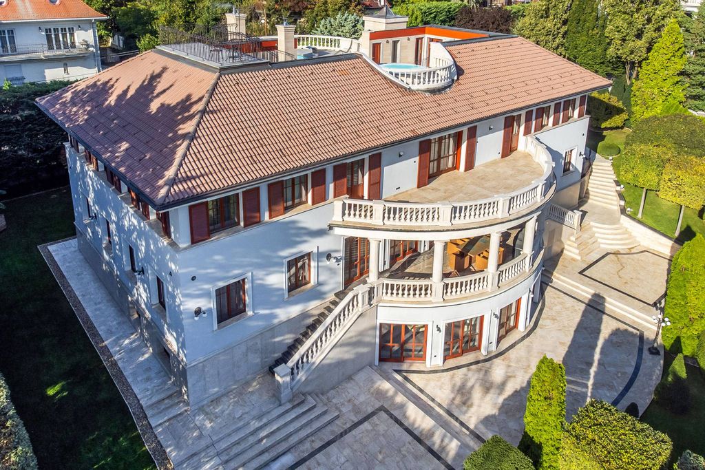 Budapest, die Hauptstadt Ungarns und eine der schönsten Städte Europas, erstreckt sich anmutig entlang der Donau. Sie teilt sich in das hügelige Buda und das flache Pest und wird durch majestätische Brücken, darunter die berühmte Kettenbrücke, miteinander verbunden. Budapest ist berühmt für seine bemerkenswerte Architektur im Barock-, Neugotik- und Jugendstil – Wahrzeichen wie das Parlamentsgebäude, die Fischerbastei, die Budaer Burg und die berühmten Thermalbäder prägen den einzigartigen Charakter der Stadt. Eine lebendige Kulturszene, eine florierende Gastronomie und ein dynamischer Tourismus ergänzen die außergewöhnliche Lebensqualität der Stadt, die dennoch relativ erschwinglich bleibt. Mit seinen renommierten Universitäten, fortschrittlichen medizinischen Einrichtungen und einem stabilen Immobilienmarkt zieht Budapest weiterhin Investoren und Auswanderer aus aller Welt an. Eingebettet in einen prestigeträchtigen Hügel in einem der begehrtesten Viertel Budapests verbindet diese luxuriöse historische Villa zeitlose Eleganz mit modernem Komfort. Die Villa steht auf einem wunderschön angelegten 2.221 Quadratmeter großen Grundstück und bietet beeindruckende 1.472 Quadratmeter Wohnfläche, darunter 175 Quadratmeter Terrassen und einen privaten Swimmingpool. Das Anwesen liegt an der Ecke zweier ruhiger Straßen und nur wenige Minuten vom pulsierenden Stadtzentrum entfernt und ist umgeben von Botschaften, exklusiven Residenzen und zahlreichen Annehmlichkeiten. Das Dach verfügt über eine atemberaubende Terrasse, einen Whirlpool und einen Pool – und bietet einen atemberaubenden Panoramablick auf die Stadtlandschaft. Die obere Etage beherbergt gut ausgestattete Schlafzimmer und einen einladenden Loungebereich. Das Erdgeschoss verfügt über ein weitläufiges Wohnzimmer, zwei private Büros, eine große Eingangshalle, eine Gourmetküche und ein Esszimmer. Auf der unteren Ebene können die Bewohner einen kompletten Wellnessbereich mit Fitnessraum, Sauna, Innenpool und Ruhebereichen sowie eine Garage und spezielle Personalunterkünfte genießen. Dieses außergewöhnliche Anwesen bietet eine seltene Kombination aus Privatsphäre, Prestige und kultiviertem Wohnen – eine hervorragende Gelegenheit in einem der besten Viertel von Budapest.