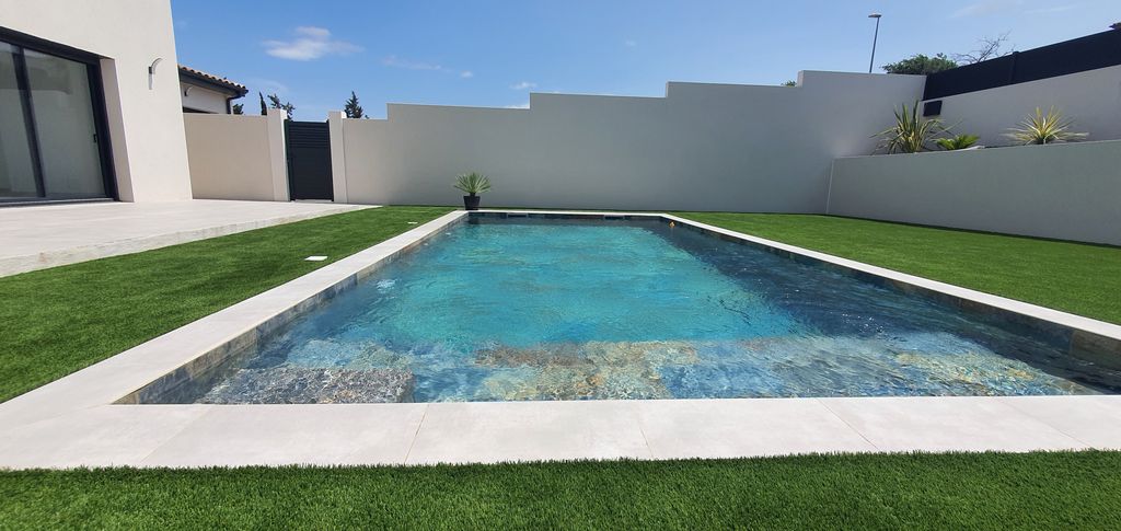 NARBONNE, entdecken Sie dieses wunderschöne, neu erbaute Haus mit 1 Schlafzimmern und 1 Badezimmer in einem Wohngebiet mit 145 m2 Wohnfläche auf einem 510 m2 großen Grundstück. Es verfügt über 4 Schlafzimmer, darunter eine Master-Suite im Erdgeschoss, ideal für ein komfortables Familienleben. Freuen Sie sich auf einen schönen 8 x 4 m großen Pool, eine von den Schlafzimmern aus zugängliche Terrasse im Obergeschoss und eine geflieste und isolierte Garage. Das Haus ist mit einer Klimaanlage und einem thermodynamischen Warmwasserbereiter ausgestattet. Die Stärken Wohnfläche: 145 m2 verteilt auf zwei Ebenen (R+1), lichtdurchflutet dank großer Erkerfenster nach Süden. Grundstück: 510 m2, komplett eingezäunt, angelegt und pflegeleicht. Gefliestes Schwimmbecken 8×4m Thermodynamisches System : „Einsparungen garantiert'! Umkehrbare Kanalklimaanlage , die für Komfort das ganze Jahr über raumweise gesteuert werden kann. Klare Sicht Anordnung Demokratische Republik Kongo Heller Eingang mit Schrank, voll ausgestattete amerikanische Küche Voll ausgestattete amerikanische Küche mit Zugang zum Wohnzimmer und Terrasse. Master-Suite (Ankleidezimmer und Duschraum). Separates WC Master-Suite (Ankleidezimmer und Badezimmer) Boden 3 Schlafzimmer mit Einbauschränken und Zugang zur Terrasse Familienbadezimmer Separates WC Für weitere Informationen können Sie Pascale NEGRE unter 06 24 10 22 43 (Narbonne Rsac 528 045 404) kontaktieren. Die Gebühren gehen zu Lasten des Verkäufers