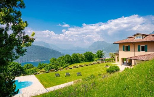 Die privilegierte Lage dieser exklusiven Villa in Sale Marasino bietet einen der faszinierendsten Ausblicke auf den Iseosee: ein spektakuläres Panorama, das die glitzernden Wasser des Sees und die majestätische Präsenz von Monte Isola umfasst. Die in den frühen 2000er Jahren renovierte Immobilie erstreckt sich über drei Etagen und zeichnet sich durch die hochwertige Ausstattung, großzügige Raumaufteilung und außergewöhnliche Helligkeit aus, die alle Räume durchflutet. Der weitläufige Garten, der die Villa umgibt und durch einen eindrucksvollen Infinity-Pool mit Seeblick bereichert wird, garantiert Privatsphäre und Ruhe und bietet den perfekten Rahmen, um die warme Jahreszeit in vollen Zügen zu genießen. Im Erdgeschoss dominiert ein großzügiges Esszimmer mit Kamin den Wohnbereich, das sich zu einer überdachten Terrasse öffnet – ideal für gesellige Momente im Freien. Direkt daneben befindet sich ein Arbeitszimmer, das sich hervorragend als Homeoffice oder Rückzugsort eignet. Die Küche ist funktional und einladend gestaltet und wird durch eine praktische Speisekammer, einen Abstellraum mit Waschküche sowie zwei Gästebäder ergänzt, die sich auch ideal für den Poolbereich eignen. Im ersten Obergeschoss befindet sich das Hauptschlafzimmer mit eigenem Bad und Zugang zu einer herrlichen privaten Terrasse – ein intimer Ort mit zauberhaftem Blick auf den See und die umliegenden Hügel, perfekt für ein Frühstück mit Aussicht oder entspannte Stunden. Auf derselben Etage befinden sich ein zweites Doppelschlafzimmer, ein Zweibettzimmer und ein großzügiges Badezimmer. Das gemütliche Dachgeschoss im dritten Stock ist über eine charmante Wendeltreppe erreichbar: Hier wurde eine private Sitzecke mit eigenem Bad eingerichtet, ideal als Ruhebereich, zusätzliches Arbeitszimmer oder Gästezimmer. Ein Haus, das von Harmonie, Schönheit und Gelassenheit erzählt, perfekt sowohl als Hauptwohnsitz als auch als Feriendomizil. Jedes Detail wurde sorgfältig durchdacht, um höchsten Wohnkomfort und Lebensqualität zu bieten. Eine elegante, großzügige und repräsentative Villa, die ideale Wahl für alle, die jeden Tag den Zauber des Iseosees erleben möchten.