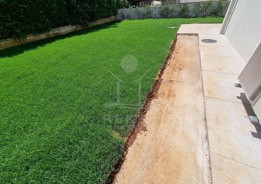 Die 150 m² große Gartenfläche bietet viel Platz für Bewegung, Spiel oder einfach zum Entspannen. Im Zentrum steht ein 24 m² großer Pool mit hell gefliestem Rand, eingerahmt von Olivenbäumen und gepflegtem Rasen. Die Terrasse im Erdgeschoss schließt direkt an den Wohnbereich an. Hier verschmelzen Innen und Außen. Ideal für Frühstück an der Sonne oder lange Abende mit Freunden.