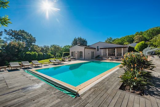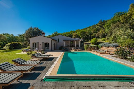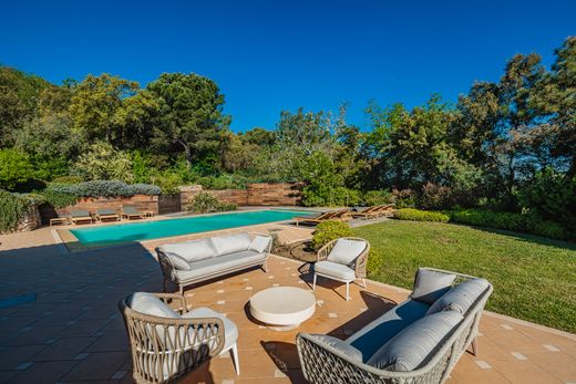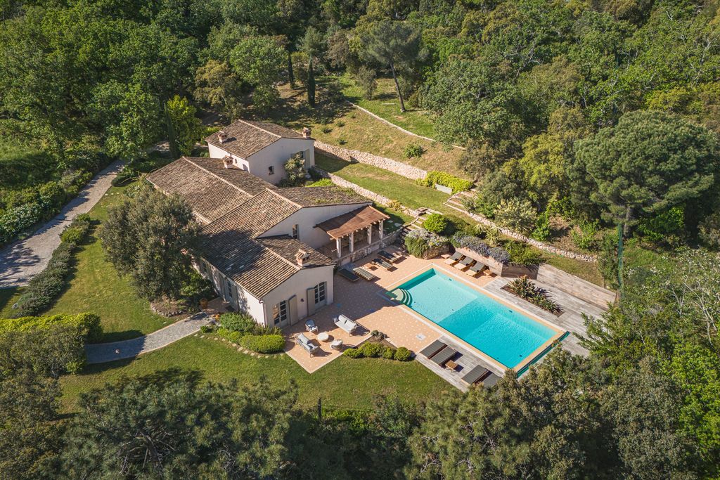 Angeboten von Saut Winter Immobilier. In grüner Umgebung, nur wenige Minuten von den Stränden von Ramatuelle und dem Zentrum von Saint-Tropez entfernt, verbindet diese prestigeträchtige Villa perfekt provenzalischen Charme mit modernen Akzenten. Auf einem 5.000 m² großen Landschaftsgrundstück, das von Weinbergen und Hügeln gesäumt ist, bietet das Anwesen ein ruhiges und elegantes Wohnumfeld. Das üppige Gelände verfügt über einen großen Swimmingpool, umgeben von Sonnenliegen, mehrere Loungebereiche im Freien, eine schattige Terrasse und einen Pétanque-Platz. Ein Bohrloch versorgt das automatische Bewässerungssystem und den Pool. Mit einer Wohnfläche von ca. 280 m² besteht die Hauptvilla aus einem hellen Wohnzimmer mit Kamin, einem einladenden Esszimmer, einer separaten Küche und vier schönen Schlafzimmern mit jeweils eigenem Bad und WC. Zwei weitere Schlafzimmer, ebenfalls mit eigenem Bad, befinden sich in einem separaten Anbau, ideal für Gäste. Die Ausstattung ist erstklassig: Fußbodenheizung und Klimaanlage, Alarmanlage, Keller, automatisches Tor mit Video-Gegensprechanlage. Ein seltenes Anwesen, das modernen Komfort und Authentizität in einer der begehrtesten Gegenden der Halbinsel vereint.