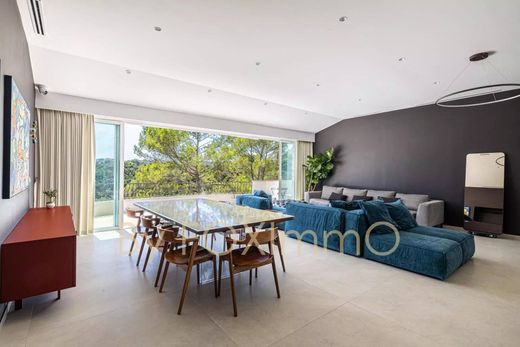 Die Villa besteht aus einer Eingangshalle, einem ca. 80m2 großen Wohn- und Esszimmer mit Kamin, das auf eine große Terrasse führt, und einer voll ausgestatteten amerikanischen Küche. Es folgen 4 Schlafzimmer, darunter ein Hauptschlafzimmer, zwei Duschbäder/WCs und ein Gäste-WC. Ein Studio von ca. 43m2 vervollständigt diese Immobilie. Das Anwesen befindet sich auf einem 4000m2 großen Grundstück mit Hanglage, wovon 1000m2 auf dem Hauptgrundstück mit einem beheizten Pool liegen. Mehrere Parkplätze befinden sich auf dem Grundstück. Umkehrbare Klimaanlage, gepanzerte Tür, Alarmanlage, neue Klärgrube, Konformität.