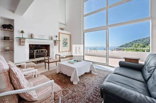 Eze am Meer – In einem kleinen privaten Anwesen in absoluter Ruhe und ohne Gegenüber befindet sich eine moderne Villa von ca. 228 m² auf einem 3.771 m² großen Grundstück mit mediterranen Pflanzen. Die Villa erstreckt sich über drei Ebenen und bietet großzügige, helle Räume mit einem Wohnzimmer mit schönen hohen Decken, einem Esszimmer mit Zugang zu einer großen überdachten Terrasse und einer halboffenen Küche. Der Schlafbereich besteht aus drei Schlafzimmern, darunter eine Mastersuite, zwei Bädern sowie einem Duschbad. Im Außenbereich bieten eine 30 m² große überdachte Terrasse sowie ein gemütlicher und geschützter Patio Entspannungsbereiche, die das ganze Jahr über genutzt werden können. Ein Apartment kann separat genutzt werden und verfügt über ein großes Wohnzimmer mit offener Küche, ein großes Schlafzimmer, ein Duschbad sowie ein Kinderzimmer. Darüber hinaus gibt es einen beheizten Freiform-Infinity-Pool, der von einer Terrasse mit Poolhaus begrenzt wird. Ein großer Keller, zwei große Parkplätze und eine geschlossene Garage vervollständigen dieses außergewöhnliche Anwesen. Die Verhandlungsgebühren trägt der Verkäufer.