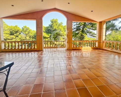 In privilegierter Lage am Berghang gelegen, vereint diese prachtige Villa mit uber 550 m² Wohnflache Großzugigkeit, Helligkeit und einen einzigartigen Blick auf die Kuste von Canyamel, den man von den sonnigen Terrassen und eleganten Veranden genießen kann.