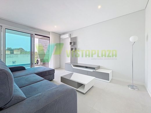 Neue 2-Zimmer-Wohnung, eingefugt in die prestigetrachtige Residenz Alvor Ria, im Zentrum des malerischen Dorfes Alvor. Mit 107 m² Wohnflache und 168,90 m² Bruttoflache bietet diese Immobilie luxuriose Oberflachen, eine privilegierte Lage und einen atemberaubenden Blick auf den Fluss. Die Innenaufteilung umfasst eine Eingangshalle, ein großes Wohnzimmer mit Zugang zu zwei Balkonen, eine voll ausgestattete Kuchenzeile, zwei Schlafzimmer mit Einbauschranken, von denen eines ein eigenes Bad hat, und zwei Badezimmer.