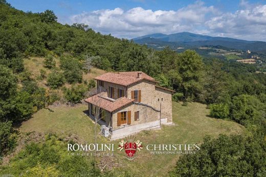 In den Hügeln um Anghiari, in ruhiger Panoramalage, 230 m² großes Landhaus zum Fertigstellen. Das Gebäude hat drei Stockwerke und soll nach Fertigstellung drei Schlafzimmer und zwei Badezimmer beherbergen. Die beiden unteren Etagen sind bereits bewohnbar, während die obere Ebene nur noch die neuesten Verzierungen benötigt. Das umliegende Grundstück (7,6 ha) besteht hauptsächlich aus Wald, könnte aber in einen Garten um das Gebäude herum umgewandelt werden.