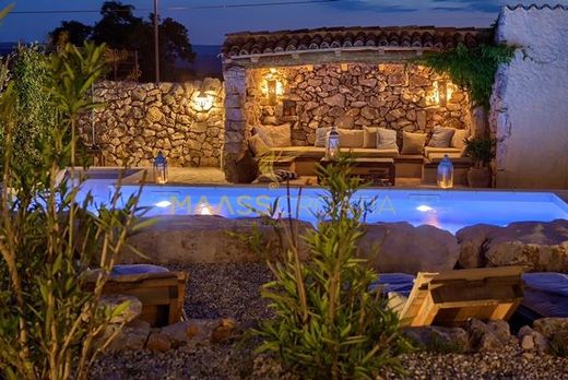 Das Äußere der Villa ist von autochthonen Steinmauern und einem Garten mit mediterranen Pflanzen sowie einem automatischen Bewässerungssystem umgeben.