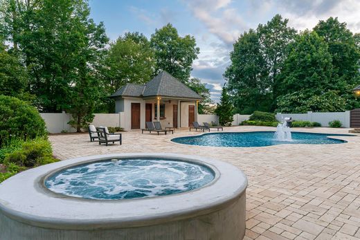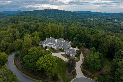 Hoch oben auf einem privaten Hügelrücken im Biltmore Park gelegen, bietet dieses vom französischen Schloss inspirierte Anwesen 1 Hektar ebenes, professionell gestaltetes Gelände mit saisonalem Blick auf die Blue Ridge Mountains. Die Residenz vereint zeitloses Design mit modernem Luxus und befindet sich in einer der begehrtesten Gegenden von Asheville, die für ihre fußgängerfreundliche Umgebung, die gute Infrastruktur und die Nähe zu erstklassigen Schulen bekannt ist. Das imposante zweistöckige Foyer führt in ein elegantes Interieur mit einer Wendeltreppe, einem deckenhohen Kamin und großen Fenstern, die für maximalen Lichteinfall sorgen. Der offene Wohnbereich, der fließend in den Außenbereich übergeht, öffnet sich zu einem privaten Poolbereich mit neu renoviertem Swimmingpool, Spa, Poolhaus, überdachter Veranda und stilvoll gestalteten Terrassen. Der Hauptflügel im Erdgeschoss besticht durch neu verlegte Dielenböden aus schwarzem Walnussholz, ein Wohnzimmer mit Marmorkamin und ein luxuriöses Badezimmer mit hinterleuchtetem Cristallo-Quarzit, Whirlpool, ebenerdiger Marmordusche, Doppelwaschbecken, zwei begehbaren Kleiderschränken und einem diskret integrierten Hauswirtschaftsraum. Die neu gestaltete Küche vereint maßgefertigte Schränke mit neuen Geräten, einem Weinkühlschrank, einer markanten Dunstabzugshaube und Arbeitsflächen aus Granit und Quarzit. Ein angrenzender Wohnbereich mit Kamin bietet direkten Zugang zum Außenbereich. Im Obergeschoss befinden sich vier Schlafzimmer mit jeweils eigenem Bad, ein zusätzliches Zimmer und ein zweiter Hauswirtschaftsraum. Eine gepflasterte, kreisförmige Auffahrt führt zu einer an das Haus angebauten Dreifachgarage und einer freistehenden Doppelgarage mit einem zusätzlichen, ausgebauten Raum darüber. Diese Residenz bietet sowohl Privatsphäre als auch zentrale Lage: Sie liegt nur wenige Minuten vom Biltmore Park Town Square, dem Blue Ridge Parkway, dem Flughafen Asheville und den exklusiven Geschäften und Restaurants von Asheville entfernt. Für alle, die ein luxuriöses Haus mit Pool, Bergblick und architektonischer Raffinesse suchen, bietet dieses Anwesen im Biltmore Park Eleganz, Großzügigkeit und einen harmonischen Lebensstil.