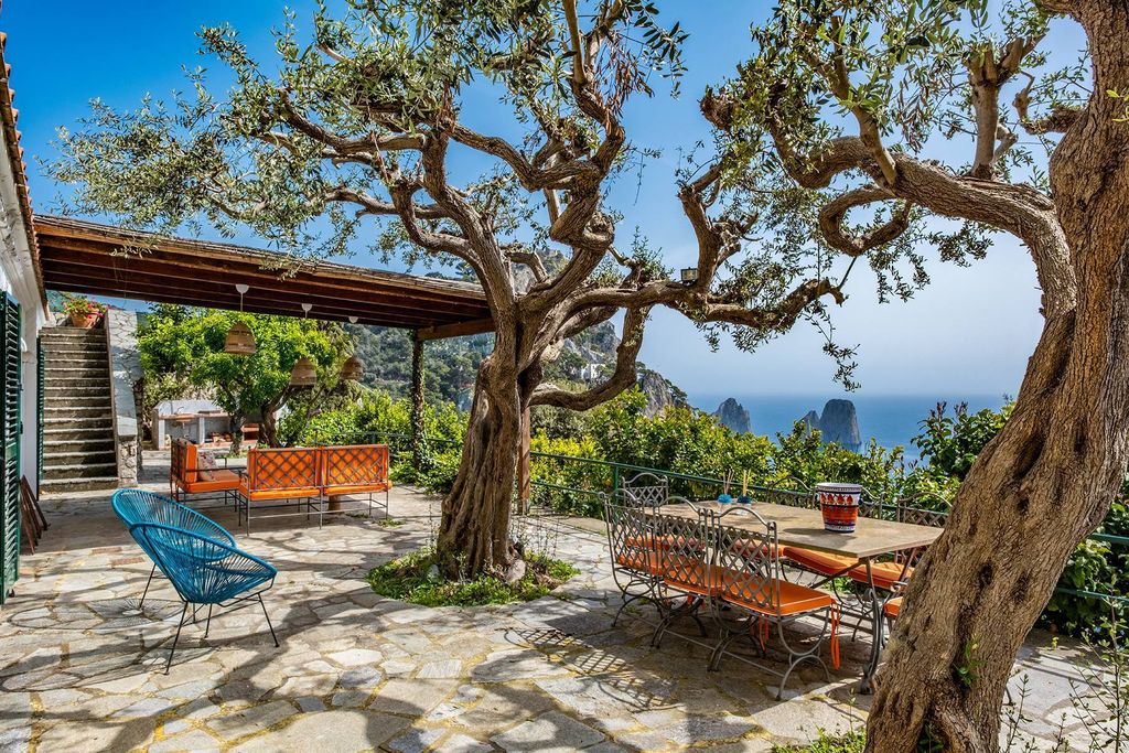 Die großzügigen, lichtdurchfluteten Innenräume umfassen acht Schlafzimmer und neun Badezimmer. Das große Wohnzimmer öffnet sich auf eine weitläufige Terrasse mit Blick auf die Faraglioni, die scheinbar mit dem Meer verschmilzt, während der eindrucksvolle Pool zu Momenten purer Entspannung inmitten der Schönheit der Insel einlädt.