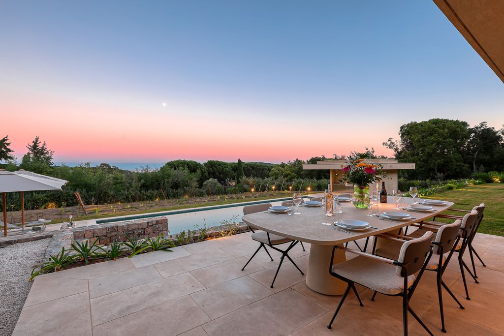 Eingebettet in idyllische Lage, unweit der Strände von Pampelonne und L'Escalet sowie des Ortes Saint-Tropez, verkörpert diese brandneue, komplett möblierte Villa mit teilweisem Meerblick zeitgenössische Eleganz. Auf drei Ebenen und 515 m² Wohnfläche bietet sie großzügige Räume mit hochwertiger Ausstattung. Beim Betreten der Villa empfängt Sie ein separater Gästebereich mit Garderobe und Ankleidezimmer und stimmt Sie auf die elegante Atmosphäre ein. Die Empfangsräume – Wohnzimmer, TV-Lounge und Esszimmer – öffnen sich nach außen und sind lichtdurchflutet. Die Küche mit Kühlraum vereint Design und Funktionalität. Die Schlafräume erstrecken sich über zwei Ebenen und umfassen eine über 50 m² große Master-Suite im Obergeschoss mit eigener Terrasse sowie vier Suiten im Erdgeschoss, jeweils mit eigenem Bad und WC. Das komplett ausgebaute Untergeschoss bietet eine weitere Suite mit Duschbad und WC. Ein voll ausgestatteter Fitnessraum, ein Hamam, eine Sauna, eine Waschküche und ein Weinkeller runden dieses außergewöhnliche Anwesen ab. Draußen erwartet Sie ein 6.630 m² großer Landschaftspark mit einem 16 x 5 Meter großen Swimmingpool, Poolhaus und voll ausgestatteter Sommerküche sowie einer überdachten Terrasse für Momente der Entspannung. Eine 95 m² große Tiefgarage sorgt für Sicherheit und Komfort. Ein Weinberg vor dem Gebäude schafft eine rustikale Atmosphäre inmitten der eleganten Umgebung und verbindet Natur und Moderne perfekt. Eine Residenz, die alle Erwartungen übertrifft – jedes Detail zeugt von Exzellenz. Für weitere Informationen und zur Vereinbarung eines Besichtigungstermins kontaktieren Sie Marie-Luce Gres unter +336 236 839 19 oder realestate@cabinetdujardin.com für CABINET DUJARDIN, Ihren Experten für exklusive Immobilien in Saint-Tropez, Ramatuelle, Gassin, Pampelonne und L’Escalet. Wir freuen uns, Ihnen diese exklusive, moderne Villa in Ramatuelle präsentieren zu dürfen, eingebettet zwischen Stränden und Weinbergen, nur wenige Schritte von den berühmten Stränden von Pampelonne und L’Escalet sowie dem historischen Ort Saint-Tropez entfernt. Diese brandneue, komplett möblierte Villa mit Meerblick verkörpert zeitlose Eleganz. Auf drei Ebenen mit 515 m² Wohnfläche bietet sie großzügige Räume, die durch hochwertige Ausstattung und raffinierte Details noch unterstrichen werden. Beim Betreten der Villa empfängt Sie ein separater Gästebereich mit Garderobe und Ankleidezimmer, der den eleganten und stilvollen Charakter des gesamten Anwesens widerspiegelt. Die Empfangsräume, darunter ein großzügiges Wohnzimmer, eine TV-Lounge und ein Esszimmer, öffnen sich nahtlos nach draußen und sind lichtdurchflutet. Die Designerküche mit begehbarem Kühlraum vereint Stil und Funktionalität auf perfekte Weise. Die Schlafräume erstrecken sich über zwei Ebenen. Im Obergeschoss befindet sich eine prächtige Master-Suite mit über 50 m² und eigener Terrasse. Im Gartengeschoss befinden sich vier Schlafzimmer mit jeweils elegantem Badezimmer en suite. Das vollständig ausgebaute Untergeschoss umfasst ein weiteres Schlafzimmer en suite, einen Fitnessraum, ein Hamam, eine Sauna, eine Waschküche und einen Weinkeller – eine Oase der Ruhe, des Wohlbefindens und der Funktionalität. Draußen erwartet Sie ein 6.630 m² großer Landschaftspark mit einem atemberaubenden 16 x 5 m großen Swimmingpool, Poolhaus und voll ausgestatteter Sommerküche sowie einer überdachten Terrasse – ideal für Momente absoluter Entspannung. Zusätzlich bietet Ihnen eine 95 m² große Tiefgarage Komfort und Sicherheit. Die Villa mit Blick auf einen kleinen Weinberg vor dem Haus verleiht diesem modernen Meisterwerk ein besonderes Naturerlebnis und einen Hauch provenzalischer Authentizität. Ein einzigartiges Anwesen, das alle Erwartungen übertrifft – jedes Detail wurde sorgfältig gestaltet, um eine Oase der Schönheit, des Komforts und der mediterranen Ruhe zu schaffen. Für weitere Informationen oder zur Vereinbarung eines Besichtigungstermins kontaktieren Sie bitte Marie-Luce Gres unter +33 6 23 68 39 19 oder realestate@cabinetdujardin.com. CABINET DUJARDIN ist Ihr Spezialist für Luxusimmobilien in Saint-Tropez, Ramatuelle, Gassin und an den Stränden von Pampelonne und L'Escalet. Risikostatus und Umweltbelastung: Ja
