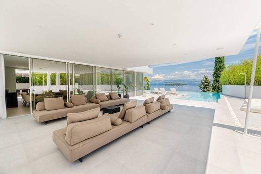 Entdecken Sie ultimativen Luxus in dieser beeindruckenden, voll ausgestatteten Residenz im idyllischen Kontokali. Die exzellente Lage ermöglicht es Ihnen, nur 5,8 km von Korfu-Stadt, dem Flughafen und dem Hafen von Korfu sowie nur 1 km vom Yachthafen entfernt zu wohnen! Mit einer Gesamtfläche von 505 m² bietet diese erst 2024 erbaute Luxusresidenz auf einem 6002 m² großen Grundstück sieben Schlafzimmer mit eigenem Bad, drei davon mit einzigartigem Meerblick, und zehn Badezimmer – Komfort und Eleganz in jedem Winkel. Beim Betreten des Hauses werden Sie von der luxuriösen, modernen Architektur und dem großzügigen Raumgefühl begeistert sein. Die 300 m² große Terrasse mit Blick auf das Meer und die Berge des Festlandes schafft eine Atmosphäre der Ruhe und Erhabenheit. Genießen Sie den atemberaubenden Blick auf das Meer und die Stadt Korfu. Der L-förmige, beheizte Infinity-Pool ist ein weiteres Highlight dieser Residenz. Darüber hinaus bietet die Residenz gepflegte Gärten sowie zahlreiche überdachte und offene Außenbereiche – darunter eine Außenküche, Grillplätze, Ess- und Sitzbereiche sowie Sonnenterrassen. Darüber hinaus bietet dieses wunderschöne, 6.002 m² große Grundstück einen Basketballplatz und einen Minifußballplatz. Das moderne Haus verfügt über einen energieeffizienten Kamin und einen voll ausgestatteten Fitnessraum. Für Sicherheit sorgen eine Alarmanlage und ein elektronisches Tor. Barrierefreiheit und luxuriöse Ausstattungsmerkmale wie ein Whirlpool und Einbauschränke steigern den Wert zusätzlich. Diese einzigartige Gelegenheit, inmitten der Natur mit allen modernen Annehmlichkeiten zu leben, sollten Sie sich nicht entgehen lassen. Genießen Sie Luxus und Komfort in einem Haus, das moderne Architektur mit natürlicher Schönheit verbindet.