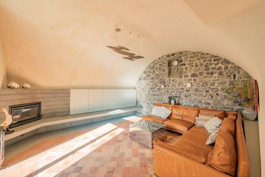 Das Anwesen erstreckt sich über ein Grundstück von ca. 8.000 m², davon 3.000 m² mit direktem Zugang zum See. Hier befinden sich ein privater Strand, ein Bootshaus für mindestens zwei Boote sowie ein großzügiger Garten mit Salzwasserpool direkt am Wasser. Umgeben wird das Anwesen von einem reifen Obstgarten, der die Landschaft mit authentischen Farben und Düften bereichert. Die Villa erstreckt sich über drei Etagen mit einer Wohnfläche von ca. 300 m². Großzügige, helle Räume laden dazu ein, jede Jahreszeit in vollen Zügen zu genießen. Im Erdgeschoss befindet sich ein Wohnbereich mit Wohnküche und Kamin, ein Gäste-WC, eine Waschküche sowie ein direkter Zugang zur Garage. Eine handgefertigte Treppe aus Eichenholz mit einer Struktur aus Titan und Aluminium führt in das Obergeschoss. Dort liegt die Master-Suite mit eigenem Bad und zwei Panoramafenstern. Auf derselben Etage befindet sich zudem eine unabhängige Wohnung mit Wohnzimmer, Schlafzimmer, Küche und Bad – ideal für Gäste oder zur separaten Nutzung. Im obersten Stockwerk befindet sich ein eleganter, offener Dachraum mit Bad, ausgestattet mit Dusche und Badewanne. Die gesamte Villa ist mit hochwertigen Materialien ausgestattet: Terrakottaböden im Wohnbereich, Parkett in den Schlafzimmern, sichtbare Holzbalken und Natursteinwände mit Einsätzen aus Sarnico-Stein, die die Geschichte des Ortes erzählen. Alle Fensterrahmen bestehen aus Holz mit Stahlkern und doppelt verglasten Scheiben, ergänzt durch elektrische Insektenschutzgitter. Eine Fußbodenheizung, die Vorbereitung für eine Klimaanlage, ein Videoüberwachungssystem mit Alarmanlage sowie der Anschluss an alle kommunalen Dienste machen diese Villa nicht nur charmant, sondern auch funktional und sicher. Abgerundet wird das Anwesen durch einen Außenbereich mit automatischer Markise und Grillplatz, einen Weinkeller, eine Taverne mit Ofen unterhalb des Pools sowie ein separates Außenbad mit Warmwasserdusche. Ein einzigartiger Ort, an dem sich die Schönheit der Landschaft mit hochwertigem Wohnen vereint. Eine Residenz für alle, die den See authentisch, diskret und kompromisslos erleben möchten.