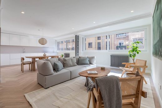Das wunderschön renovierte Apartment befindet sich im zweiten Stock eines angesehenen Gebäudes in der Calle de Alonso Cano, in einem der begehrtesten Viertel von Madrid. Mit einer Wohnfläche von ca. 193 m² kombiniert die Residenz die zeitlose Architektur Madrids mit zeitgenössischer Raffinesse und moderner Funktionalität. Die lichtdurchfluteten und elegant gestalteten Räumlichkeiten bieten Komfort und Eleganz. Das geräumige Wohn- und Esszimmer ist nahtlos mit einer modernen Küche verbunden, die mit hochwertigen Oberflächen und integrierten Geräten ausgestattet ist. Die neutrale Farbpalette und raffinierten Materialien schaffen eine ruhige und einladende Atmosphäre im gesamten Apartment. Es verfügt über drei geräumige Schlafzimmer mit eigenen Bädern, die sorgfältig entworfen wurden, um Privatsphäre und Komfort zu bieten. Die Hauptsuite verfügt über ein raffiniertes Badezimmer und maßgefertigte Einbauschränke. Ein zusätzliches Gäste-WC bietet Komfort, während jeder Raum Liebe zum Detail und makellose Handwerkskunst zeigt. Zu den zusätzlichen Annehmlichkeiten gehören ein privater Parkplatz, ein Aufzug und ein Concierge-Service. In unmittelbarer Nähe der Paseo de la Castellana und umgeben von charmanten Cafés, Boutiquen und kulturellen Orten, bietet diese Residenz eine außergewöhnliche Gelegenheit, das elegante und lebendige Leben in Chamberí zu genießen, einem der begehrtesten Wohnviertel Madrids.